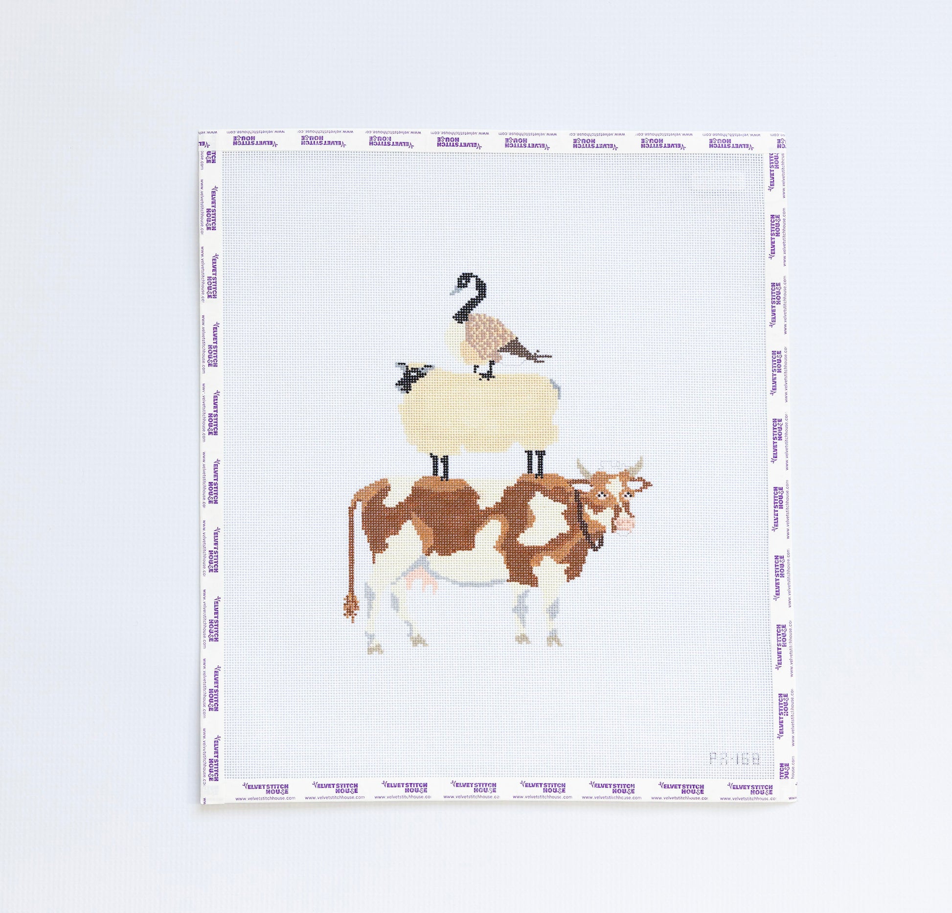 This adorable trio will have you grinning from ear to ear! This design features a cow, sheep, and goose in all their whimsical glory. Measuring approximately 7" x 8", it's the perfect size for framing, gifting, or a pillow. Stitched on 18 mesh.