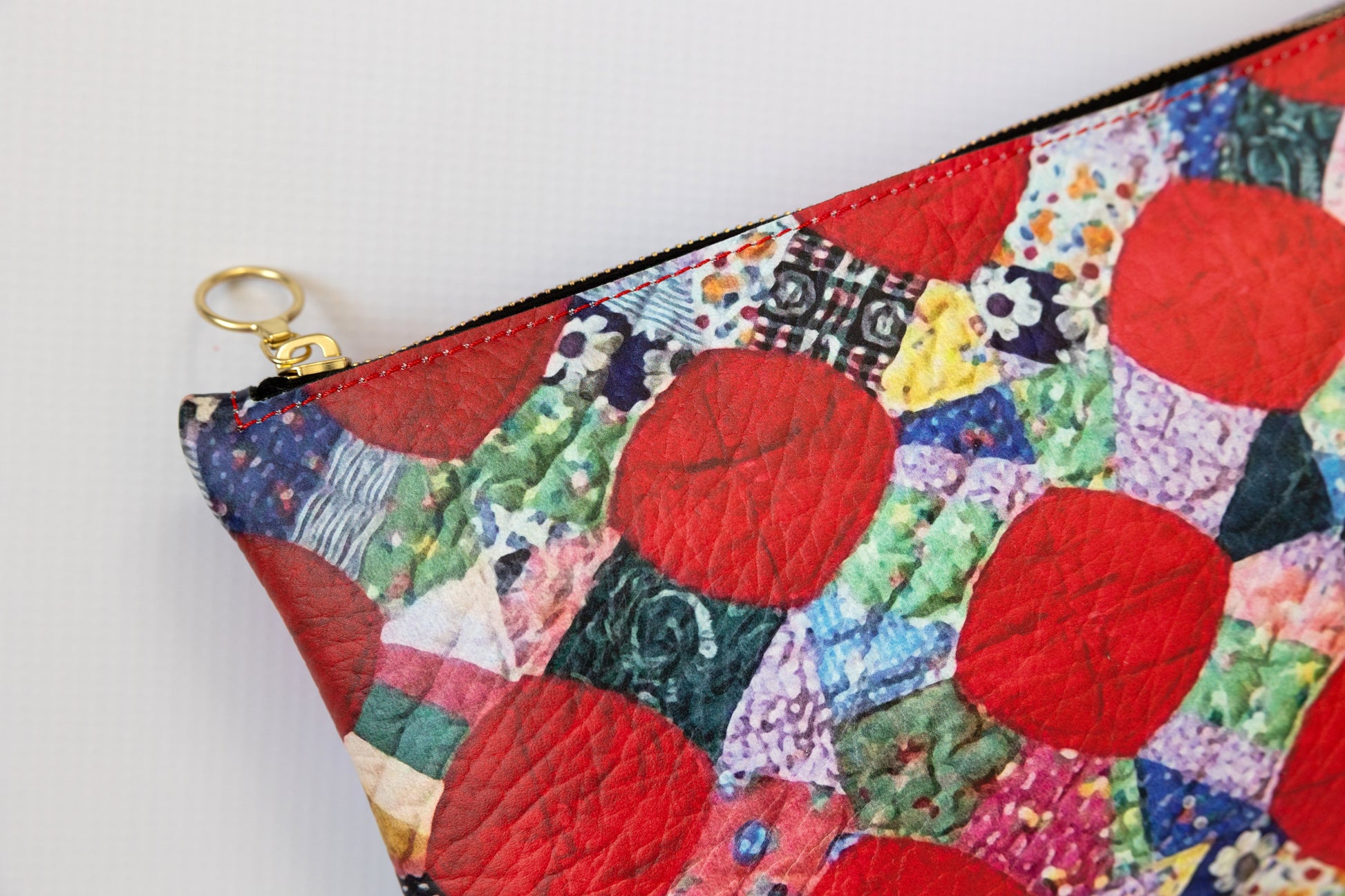The Macintosh design began with a vintage Snowball Quilt from Jess’s archive. Tigre de Tartán transformed its appliquéd red circles into an exclusive custom illustration, painterly in execution and printed on textured Nappa leather. The effect: abstract up close, crisp and apple-bright from afar.